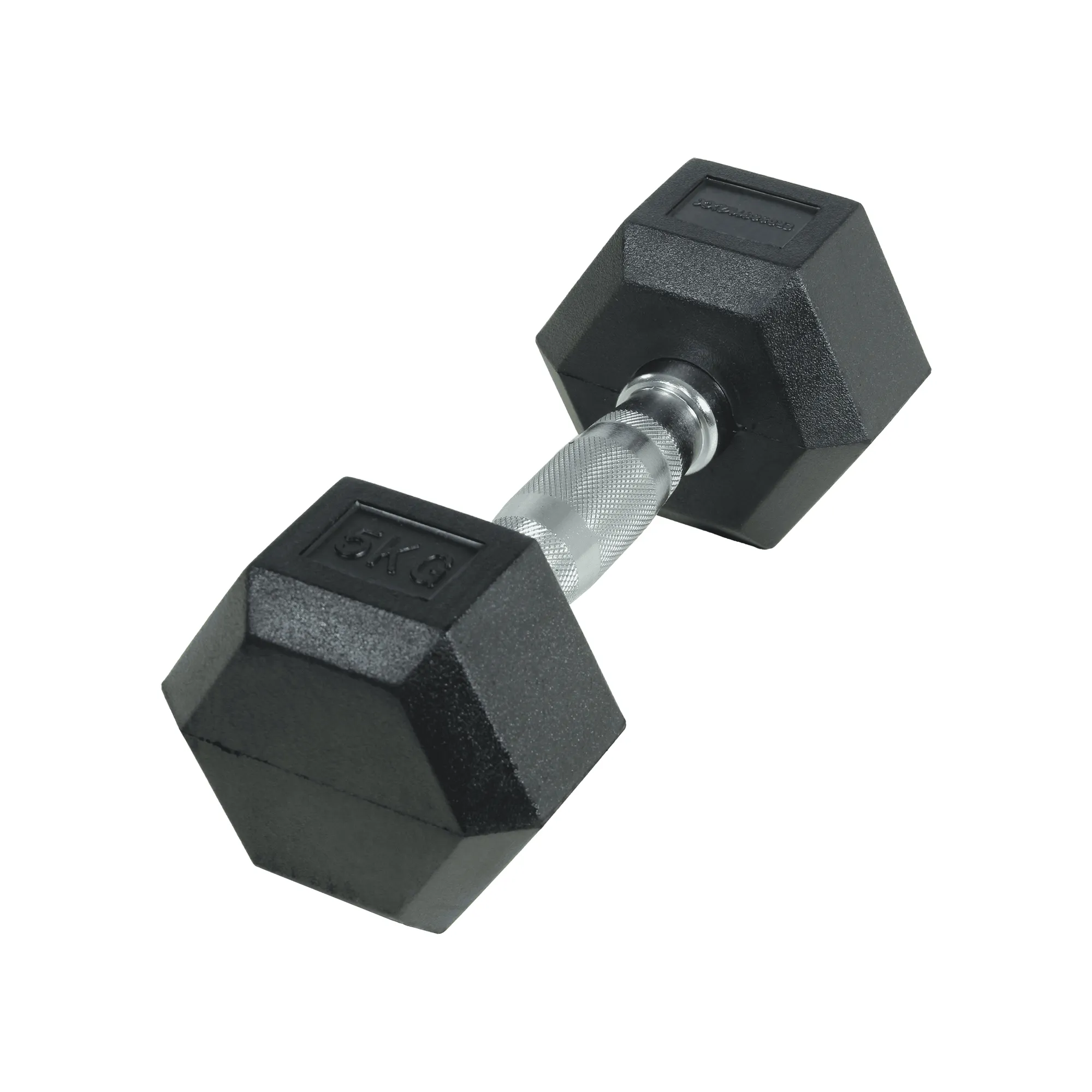 Crossmaxx Hexagon Håndvægt 5 kg – Lavet i støbejern, belagt med gummi – Riflet håndtag for godt greb – Til crossfit og styrketræning