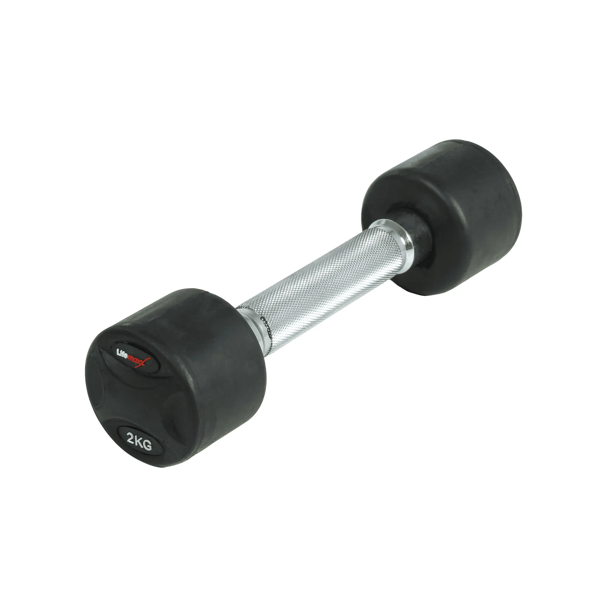 Lifemaxx fast håndvægt 2 kg – Rund håndvægt med riflet greb – Lavet i støbejern beklædt med gummi – Til crossfit og styrketræning