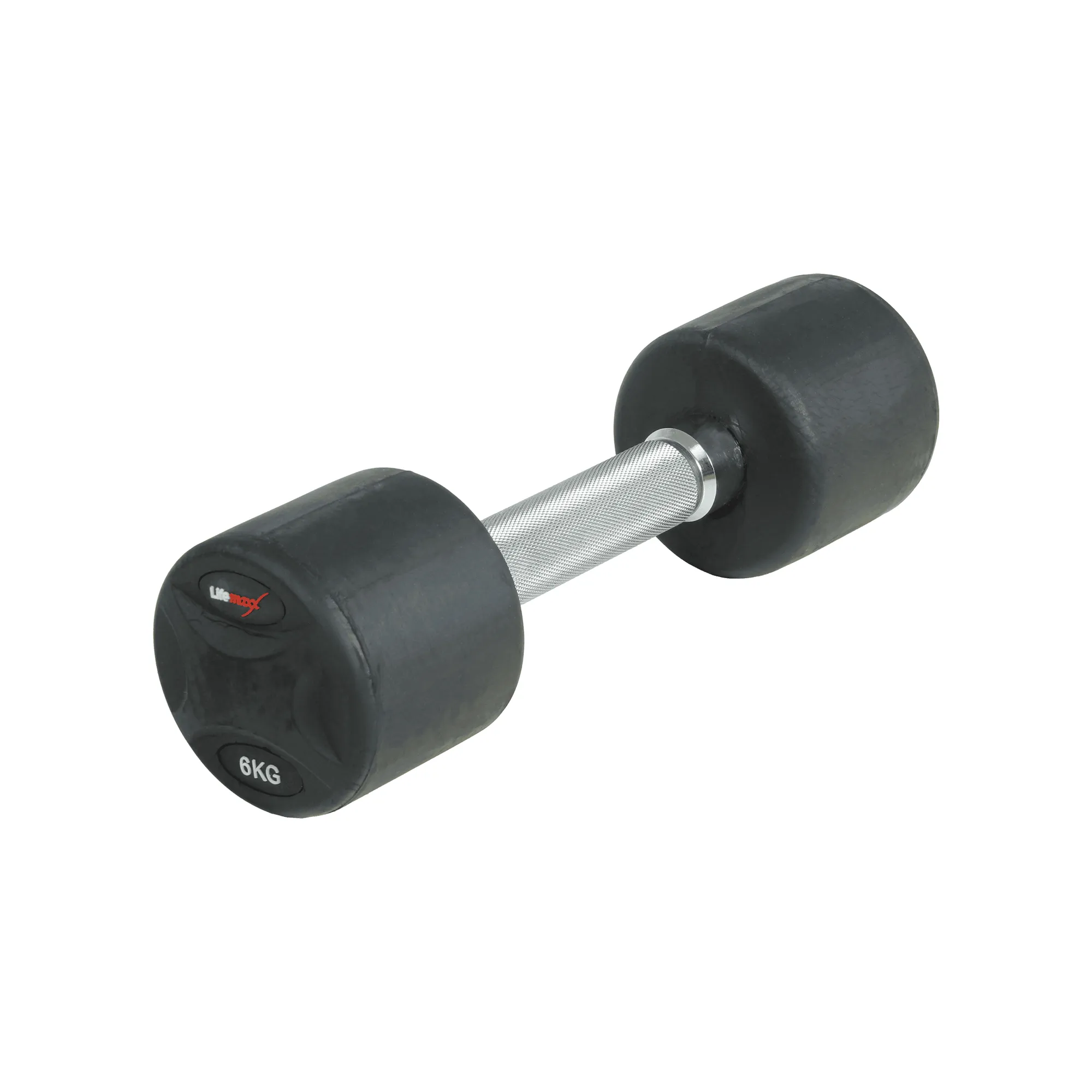 Lifemaxx fast håndvægt 6 kg – Rund håndvægt med riflet greb – Lavet i støbejern beklædt med gummi – Til crossfit og styrketræning